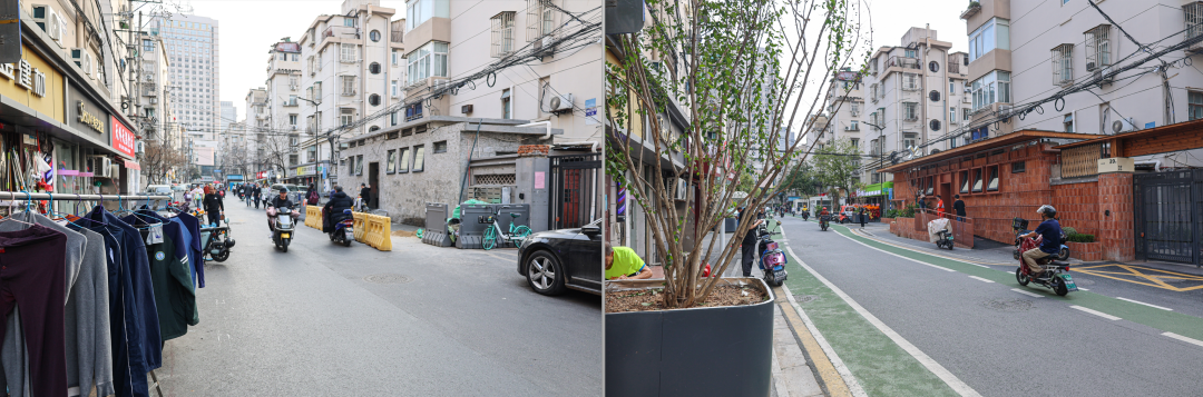 在街道平面设计上,设计团队将各类行为活动进行细化分析,使得边角空间都可以获得良好使用。同时针对沿街立面以及两侧的店面标识进行分类设计,重点对于两侧的社区入口通道进行改造提升,这些做法显著改善了老城背街小巷空间拥堵、环境衰退、秩序杂乱等问题,构建了主街创意商业与支巷生活服务互相补充、互相促进的新格局。