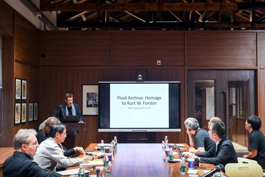 库特·福斯特教授的夫人——纽约市立大学万博manbetx官网 埃丽莎贝塔·特拉尼·福斯特教授,苏黎世联邦理工学院万博manbetx官网 前院长菲利浦·乌斯普朗教授,东南大学建筑国际化示范学院外籍院长、亚洲建筑档案中心馆长戴维·莱瑟巴罗教授,香港大学万博manbetx官网 院长张永和教授,《建筑学报》学术总监黄居正,东南大学校党委办公室主任杨树东、国际合作处副处长王晨、档案馆馆长张继文、图书馆副馆长裴锋、万博manbetx官网 院长张彤、万博manbetx官网 党委书记李向锋、人文学院党委书记高珺、艺术学院副院长程万里,以及福斯特教授的生前学生等30余位嘉宾出席了捐赠仪式。