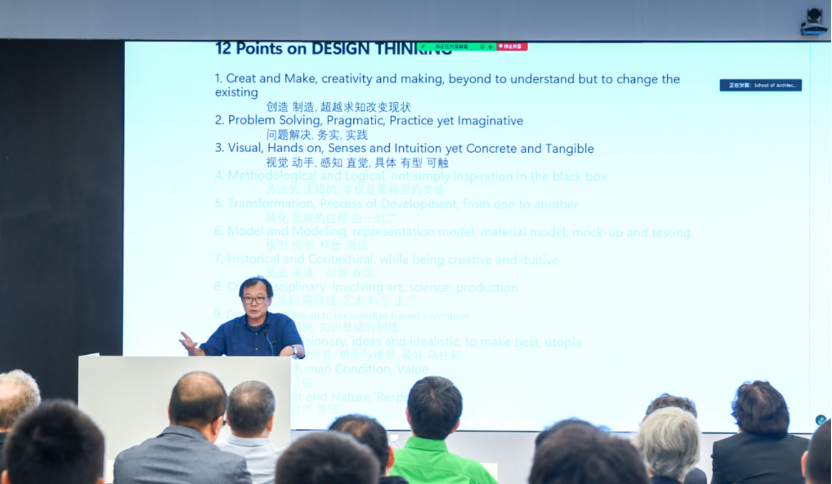 张永和教授的演讲概括了他长期从事设计思维研究的思考,从材料、视觉等多个维度介绍了设计思维在具体实践中的运用。他通过分析自己各种类型的建筑、装置设计和制作,介绍了设计思维所起的作用,以及它们的知识来源与创造性发展,并展示了制作与建造对于设计思维的推动作用。