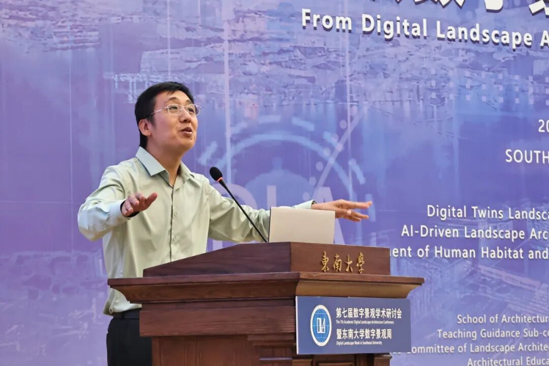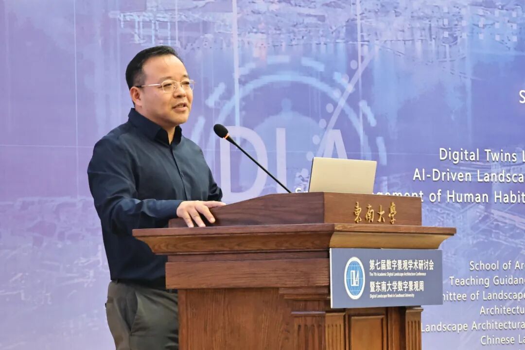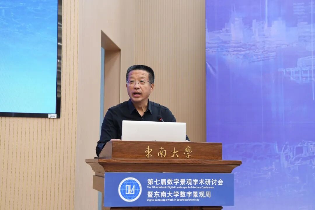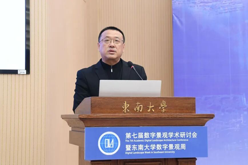 李向锋书记回顾了万博manbetx官网 “数字景观”教育、科研与实践发展历程,概述了东大风景园林人从数字景观原理与机制发端,历经数字景观逻辑、结构、方法与技术研发,直至当前聚焦智慧技术与景观实践深度融合的关键跨越。他指出,作为连续七届数字景观学术研讨会的主办单位,万博manbetx官网 不仅见证了数字景观从起步探索到高位发展的完整过程,更成功将“数字景观学术研讨会”打造为风景园林专业建设发展中的特色品牌与学术高地;希望本届研讨会聚焦数字孪生背景下人居景观环境高质量发展,拓展当代风景园林专业教育、研究与实践的深度和广度,助力风景园林专业迈向新的辉煌。