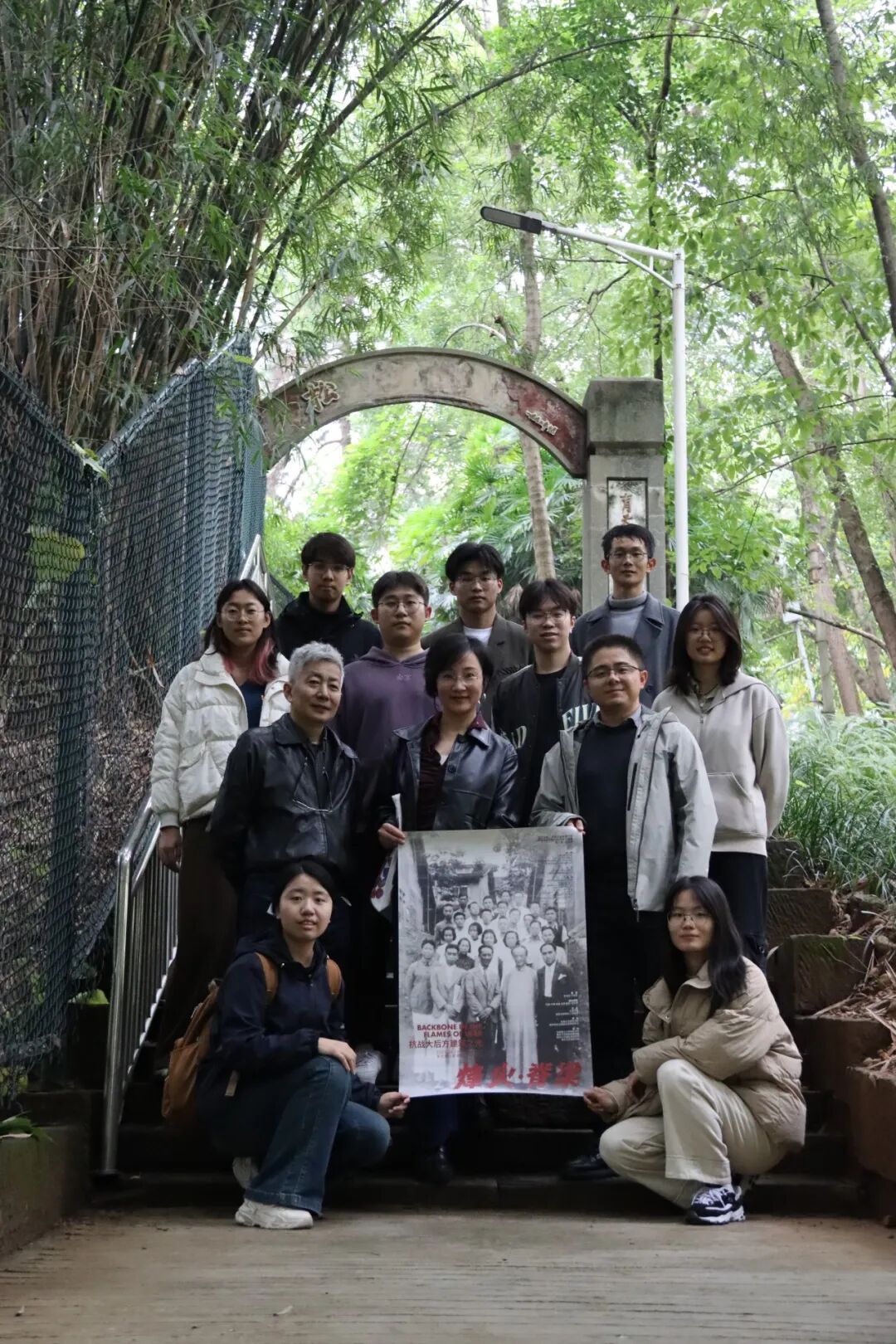 活动尾声,双方师生代表循迹历史影像,复刻前辈国立中央大学建筑系师生松林坡合影留念。当年战火纷飞的抗战岁月里,他们辗转西迁、坚守办学,在颠沛中守护教育火种、深耕学术薪火,这份执着与担当成为后辈永远的精神指引,而此次复刻合影,正是对这份坚守最庄重的传承与致敬。