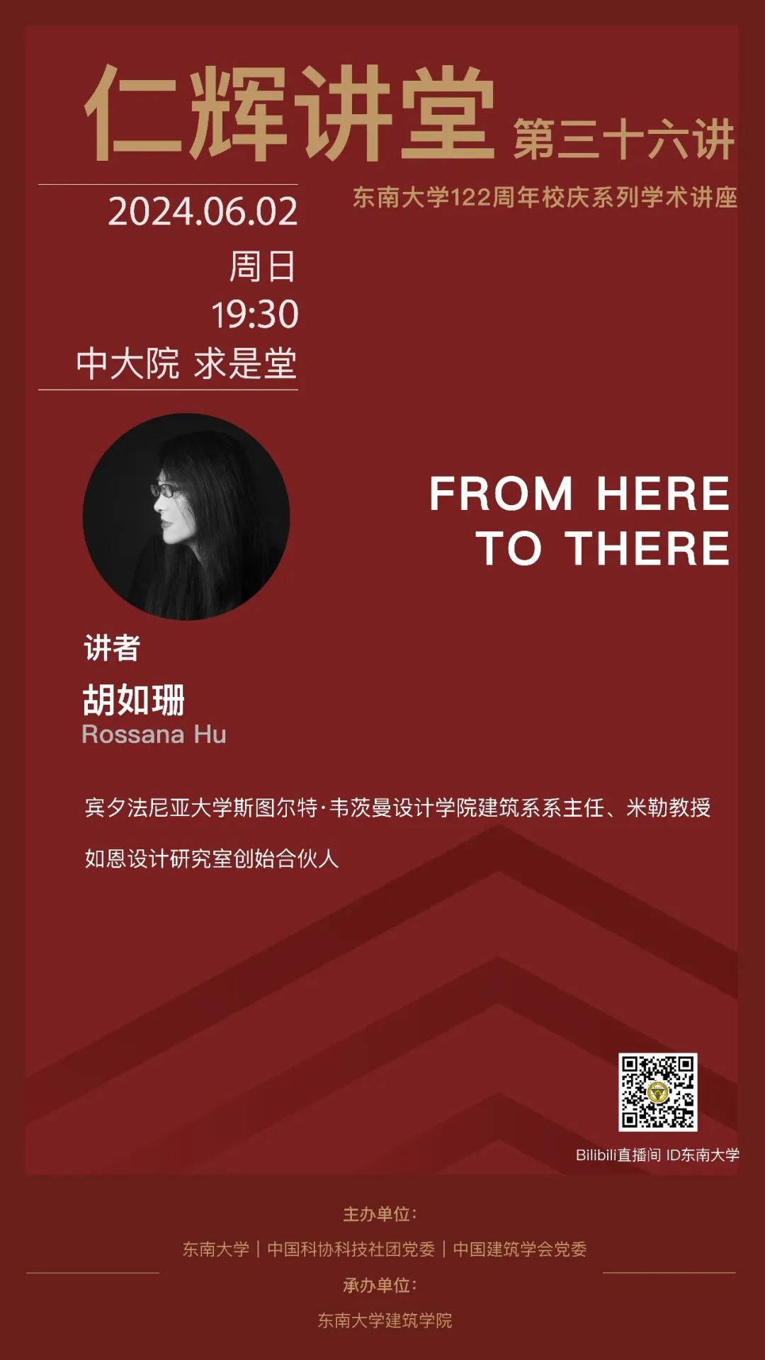 本期仁辉讲堂为东南大学122周年校庆系列学术讲座,由宾夕法尼亚大学斯图尔特·韦茨曼设计学院建筑系系主任胡如珊(Rossana Hu)教授主讲,采取线上线下同步直播的方式开展。