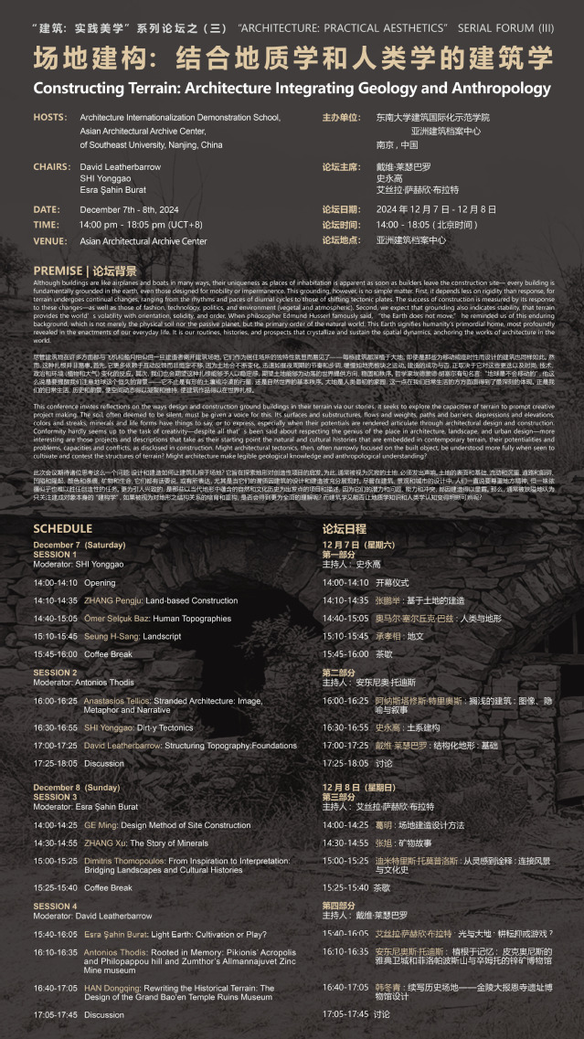 自然地形本体是一种客观事实。城市营建使自然地形不同程度地转换为一种半自然的中间状态,并由此赋予地形以不同的时间痕迹和人文意义。本报告以金陵大报恩寺遗址博物馆设计为例,基于历史地形与城市形态结构的关联理解,讨论城市建筑设计中空间结构的整体性,及其与历史地形互动建构的可能策略。遗址博物馆因此也成为揭示人与土地互塑和共生的文明见证。